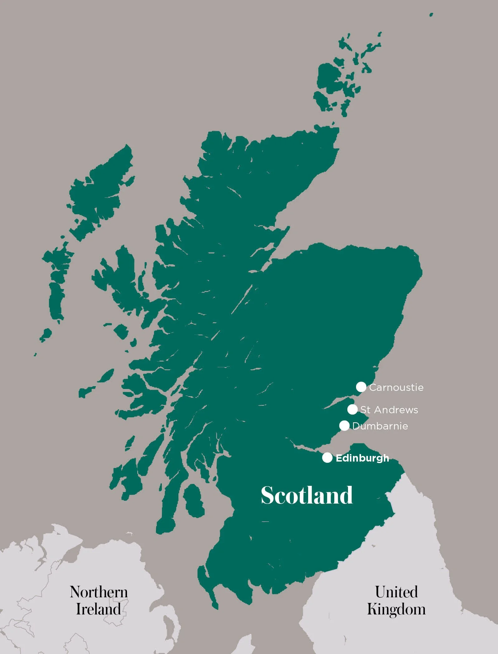 A visit to St Andrews offers one of the most complete golfing experiences in the world – historic links courses, from the Old Course to Kingsbarns, are paired with quintessential Scottish hospitality, windswept beaches, and centuries of heritage. The town itself provides a perfect gateway for exploration; filled with medieval ruins, boutique streets and cafés, and framed by the dramatic coastline of Fife. Beyond the town, nearby Perthshire reveals charming fishing villages, rolling estates, and golf courses that rank among the finest links in the world.